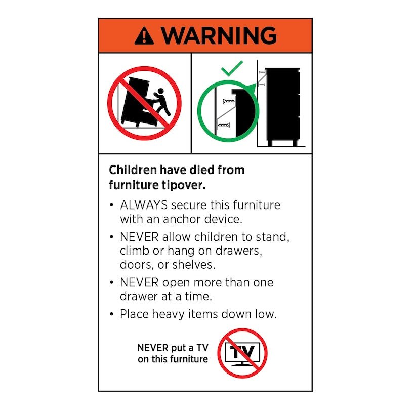 WARNING: Children have died from furniture tipover.
